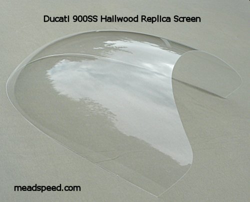 Hailwood Ducati 900 Replica Screen as fitted to the Mike Hailwood replica bike. Supplied undrilled. Fits both the one piece and the two piece full fairings. This screen lays flat on a surface and fits into a recess,