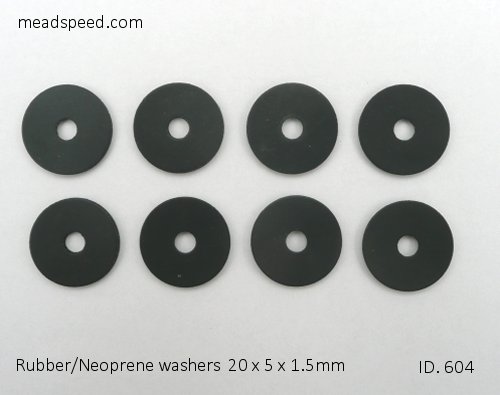 Rubber / Neoprene Washers 20mm x 5.5mm x 1.5mm. Pack of 8
