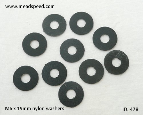 Nylon Washers for fitting under the heads of Fairing Screws to avoid damage to Paintwork etc. M6 x 19mm dia. many other uses. We also have rubber washers.