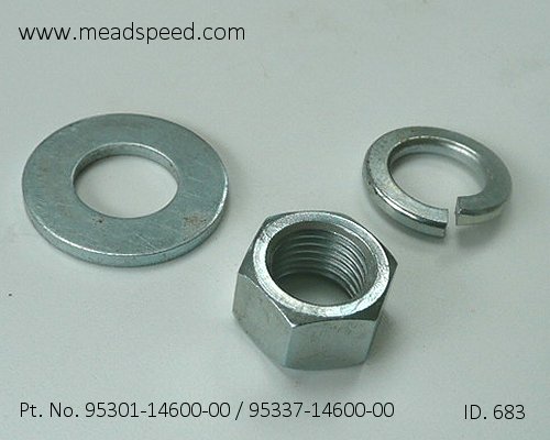 Yamaha Front Wheel spindle nut M14 zinc plated. Supplied with washers. A replacement of the original Pt. No. 95301-14600 / 95337-14600-00.