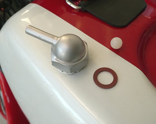 Fuel Tank Breather to fit most racing Yamaha's 1965-80. A replica of the original Pt. No. 143-24681-00. Supplied complete with nylon ball and gasket. to fit most Yamaha TA125,TD1B-C,TD2/3, TR2/3, TZ250/350A-G, TZ500/750A-F. Ball and Gasket ID 489.