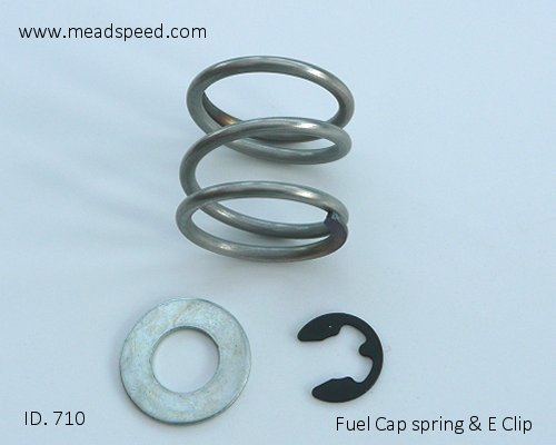 Fuel tank cap Spring in stainless. with washer & E clip. Pt. No. 90501-20130-00, 93430-06005, The spring fits between the Cap and Seal to prevent fuel leakage.