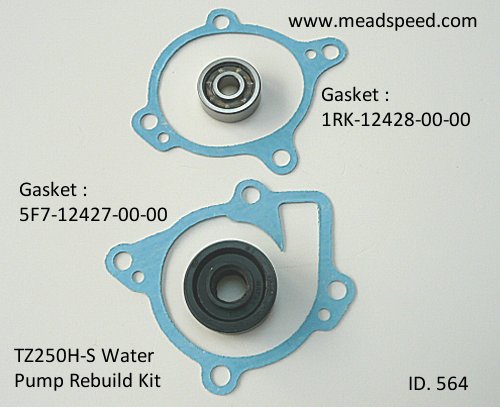 Yamaha TZ250H-T Water Pump Rebuild Kit with 2 x Gaskets, Seal & Bearing. All parts available separately. See picture for identification of gaskets. Gasket (1)Pt No. 5F7-12427-00-00, Gasket (2)Pt. No. 1RK-12428-00-00, W/Pump SealPt. No. 93103-12119, W/Pump Bearing (B628)Pt No. 93300-62805,